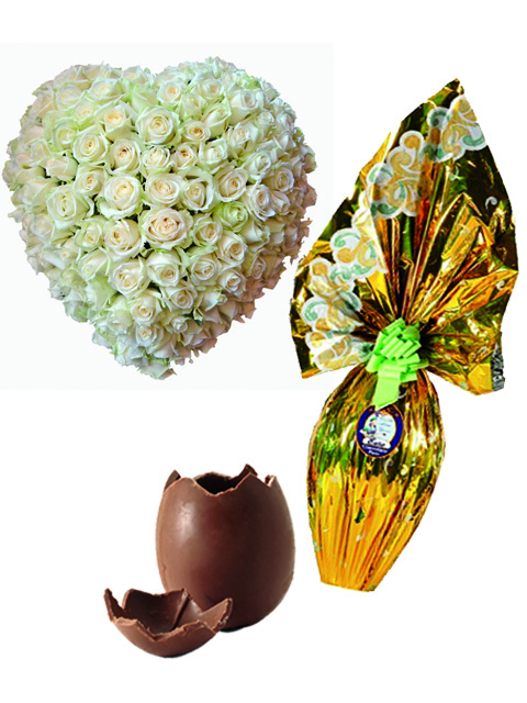 100 rose bianche con uovo di pasqua Cuore 100 rose 1 uovo pasqua